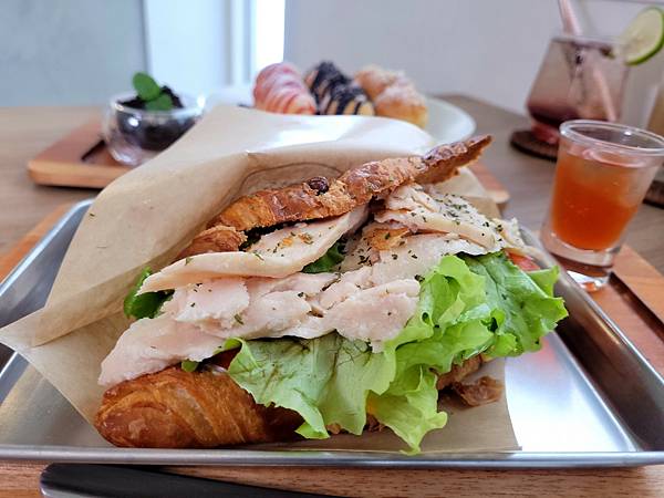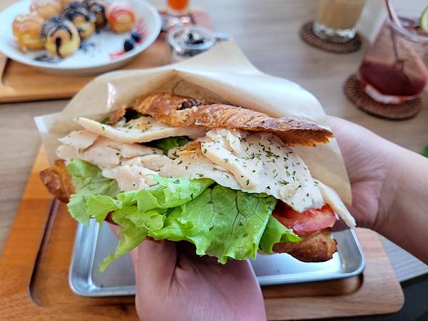 多層皮薄的可頌~加上鮮嫩多汁的燻雞與清爽蔬菜~沒有套路全是愛
