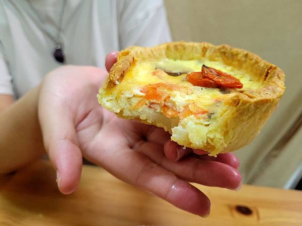 派皮薄而酥、不乾柴~讓人有種在吃鹹的葡式蛋塔的錯覺