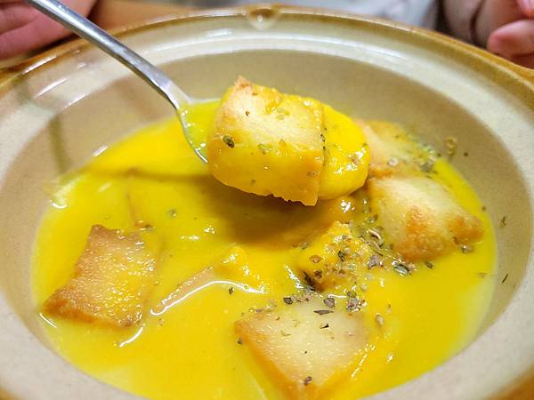 麵包塊就像小海綿,保留酥脆外皮,內裡吸飽了湯~在口中爆發美味💥