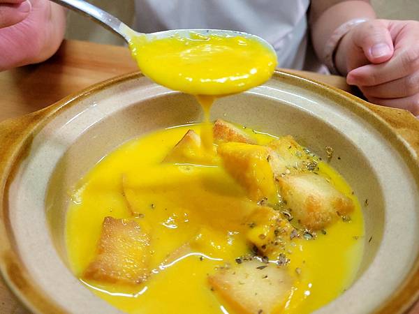 🥣奶油起司南瓜湯-以純牛奶與多種蔬果、南瓜熬煮,口口甘甜