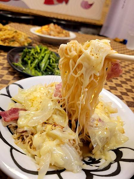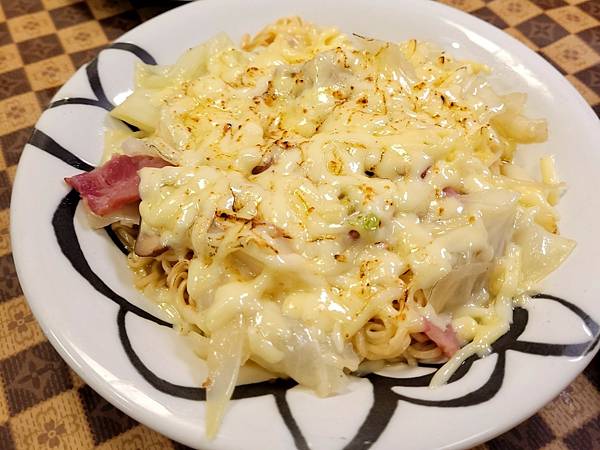 厚厚一層起司蓋在炒泡麵上~起司腦袋都要瘋啦!