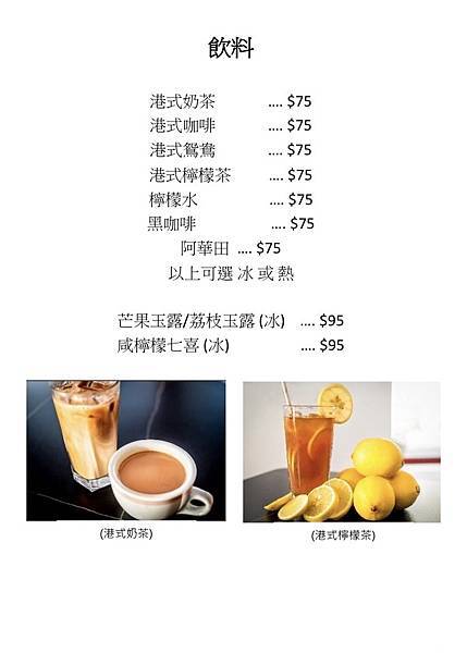 🥤 飲料:🍵港式奶茶/☕港式鴛鴦