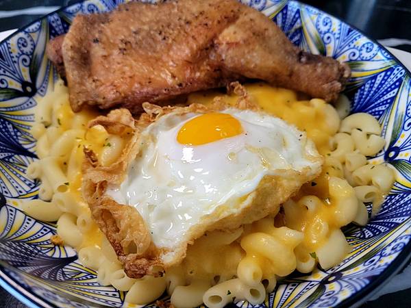 👍推薦餐點:🍝現炸雞腿起司拌麵(通心粉)+🍳焦邊蛋(升級套餐+45元飲料)$295
