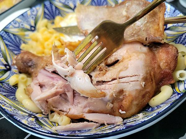 🍝現炸雞腿起司拌麵(通心粉)+🍳焦邊蛋