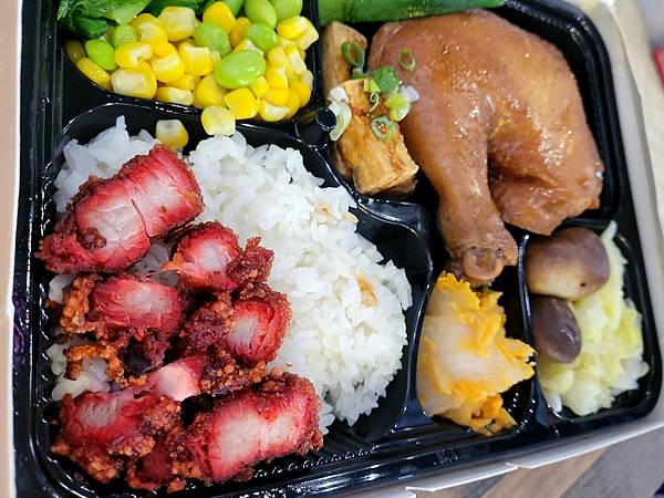會議便當拆分來看超級超值,玫瑰油雞腿單點$98、紅糟肉單點$65,