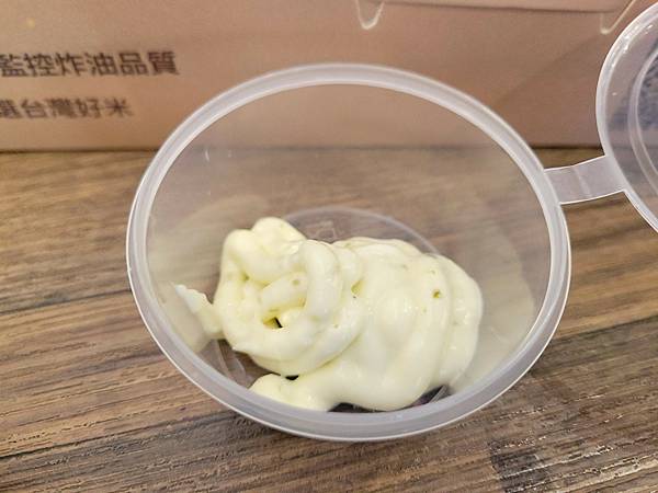 使用原塊鱈魚肉+炸物絕配的塔塔醬,附的塔塔醬份量不少