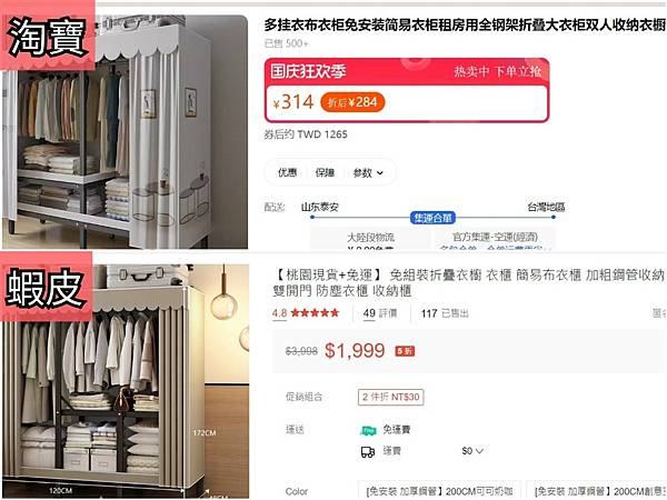 🚪衣櫥-淘寶$1265/蝦皮$1999,