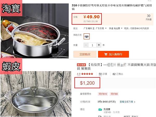 🍳不鏽鋼鴛鴦鍋-淘寶$222/蝦皮$1200