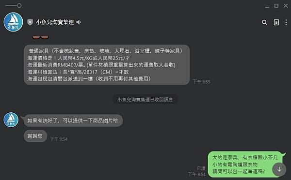 小魚兒是專門針對台灣的私人集運公司,有官方LINE聯絡方便,