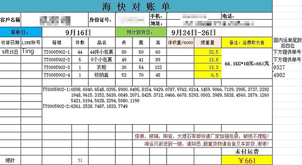 這次衣櫃+收納箱走海運、小包裹全部走海快,