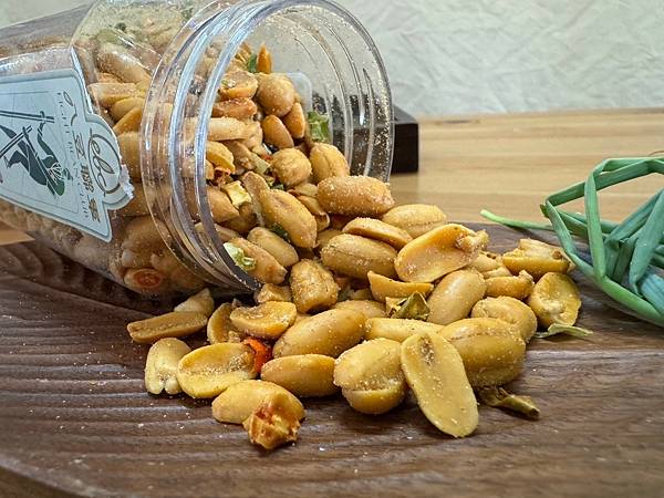 三星蔥花生選用三星蔥加上北港正宗芝麻油,香味浸透花生~