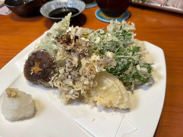 🍤 蔬菜天婦羅-有香菇、洋蔥、舞菇、青椒、茄子,純蔬食的炸物小拼盤無誤!