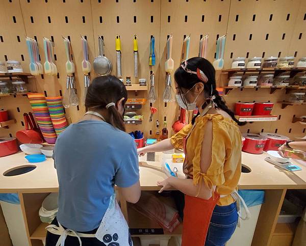 雖說是自助式,但是店裡的小老師們(店員)都有烘焙經驗,他們會注意著顧客們的步驟,遇到困難時能夠主動詢問他們,