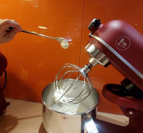 旁邊還有勺子能夠讓你挖起鮮奶油打發狀態~確認鮮奶油已經準備好囉!!