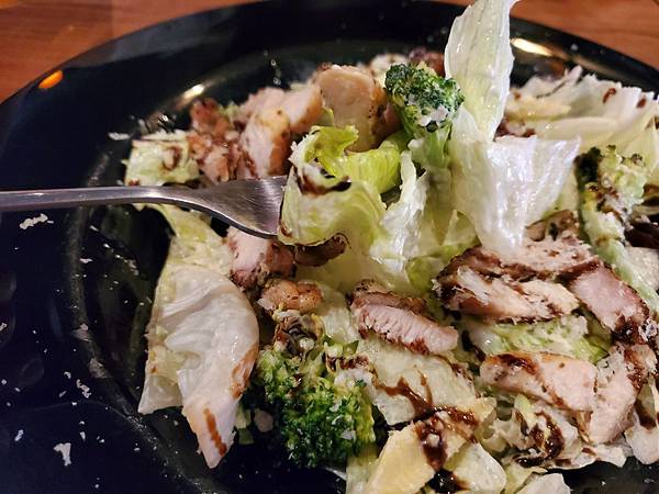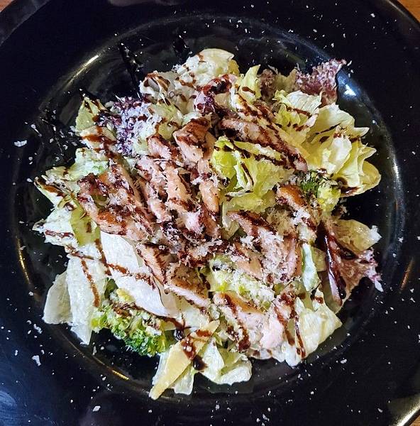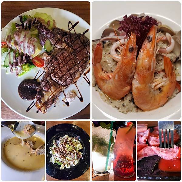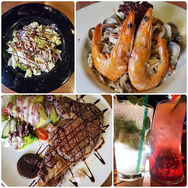 這次點了他們家的雞肉凱薩沙拉、老饕穀飼牛排、奶油松露海鮮燉飯,