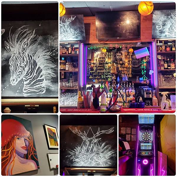 店內有很多奇幻的畫,我都覺得蠻美的,角落也有飛鏢機,還有提供骰子跟桌遊~跟朋友來能玩的娛樂不少!!