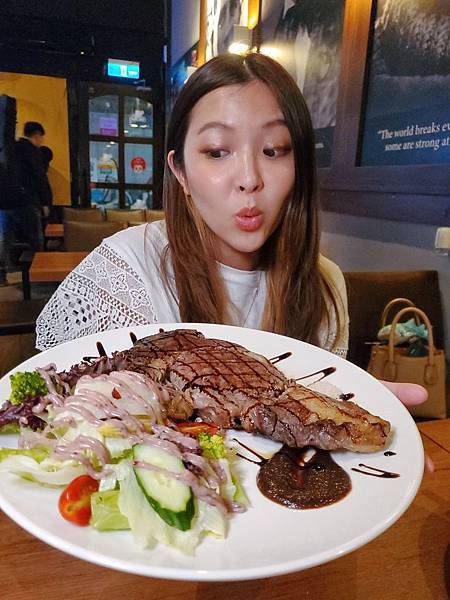 牛排超大塊~比臉還大!!因為是單點,旁邊附上了一點沙拉,