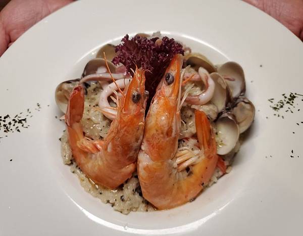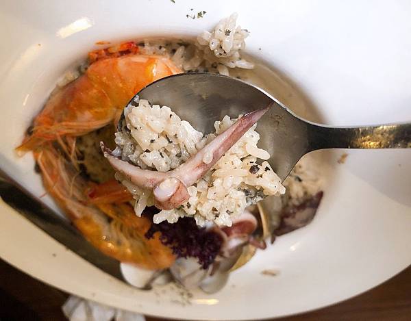 燉飯的飯粒粒分明不軟爛~很有口感!!而且奶味不會太重,不會蓋掉了松露的香氣,花枝口感爽脆!
