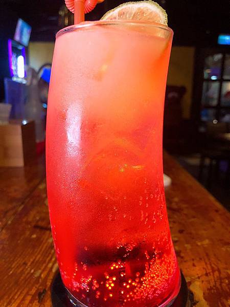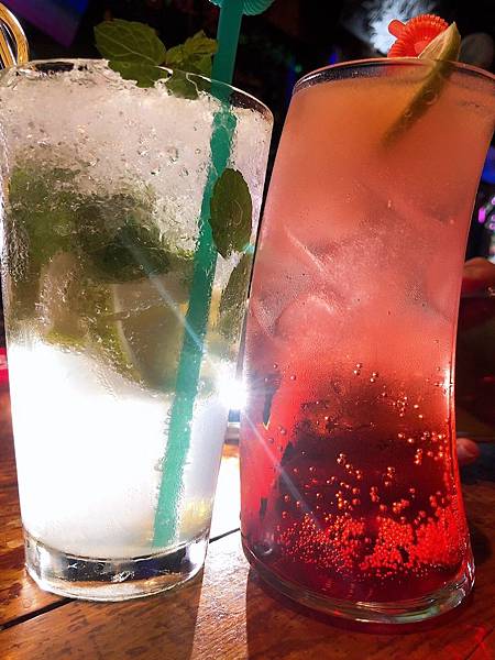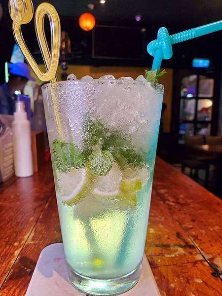 特調的雞尾酒是蘭姆酒基底+雪碧跟檸檬、薄荷,是微苦、清涼清闖的一款調酒,