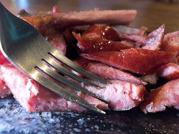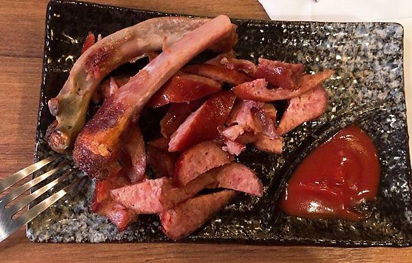 帶骨的香腸第一次見到吧!?吃起來很像德式香腸,味道很夠、醃漬的很入味,