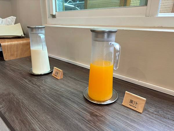 飲料有🧃果汁、咖啡☕、豆漿🥛可暢飲