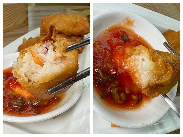 老油條有了靈魂,裡面灌滿Q彈扎實的花枝漿、蝦仁 ,