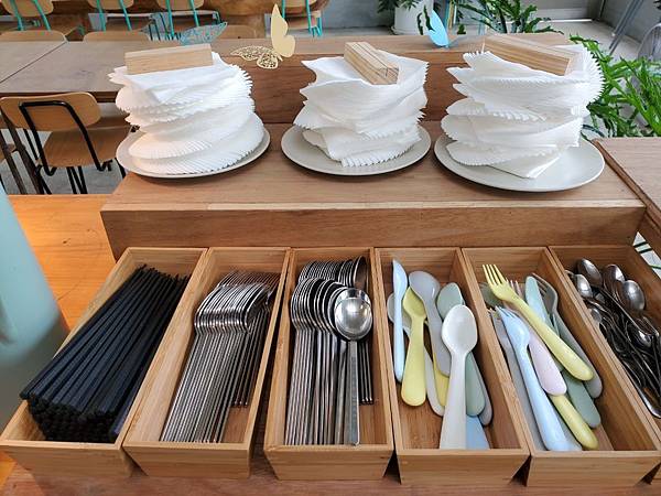 刀叉、筷子與餐巾紙擺在同一區塊,