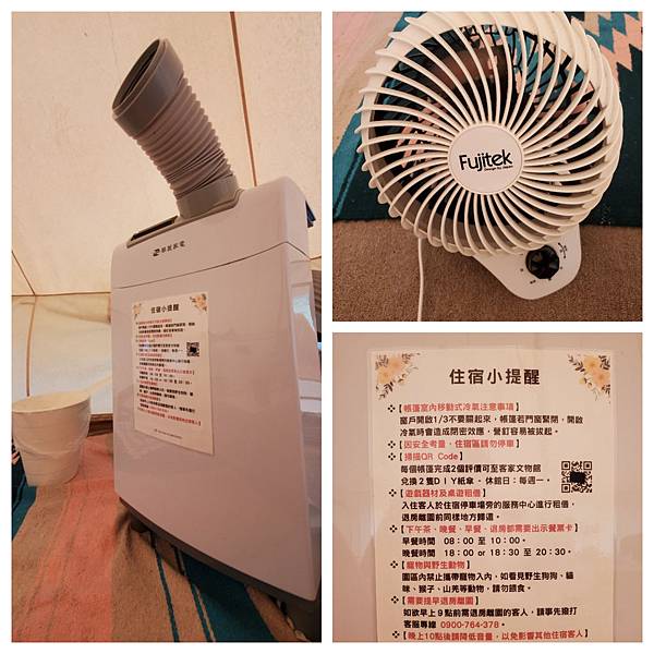 裡面還有移動式冷氣~跟循環風扇不管夏天冬天來都可以住得很舒適!