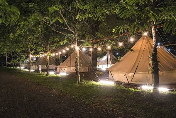 有的帳篷外面的小燈泡亮了!!也超美~很有歐美露營風格的感覺!!