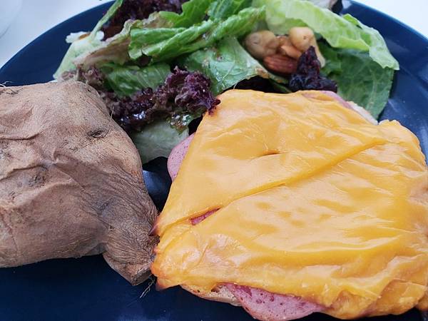 起司火腿搭配147米粒吐司~火腿+起司的鹹香被米吐司的米香沖淡了~整體口感很紮實!!蠻容易飽足的,