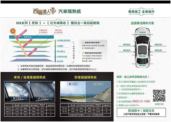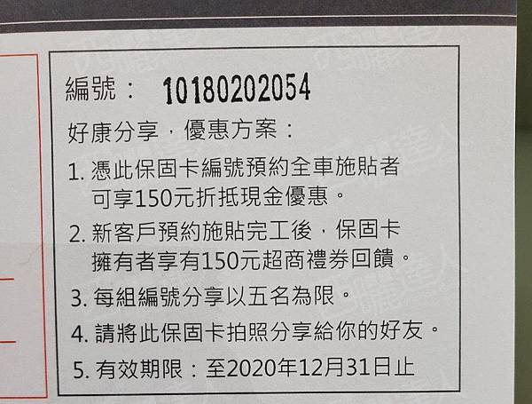 工程完成後它們還給了一張保固卡,西曬達人它們的隔熱紙有五年的保固,