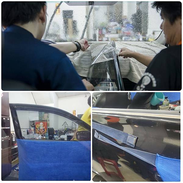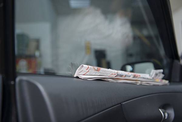 他們也在車身車窗的縫隙內塞入報紙,幫忙吸取水分;幾天後水波感就會消失,報紙則是隔天就能取下囉!!