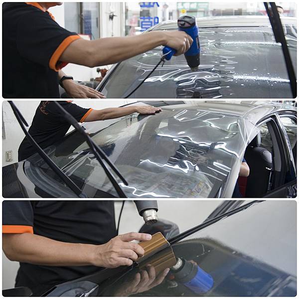 前後擋風玻璃因為帶有弧度,比較沒有那麼平面,貼上之前得先用熱風機吹過稍微塑形,這樣貼近去才會更服貼!