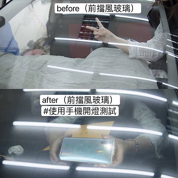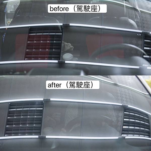 後擋風玻璃的前後差異,除去氣泡的問題解決了外,鏡面的感覺差很多;