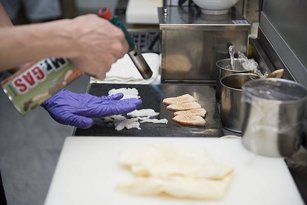偷拍師傅炙燒時的樣子,處理餐點都很用心、很認真!