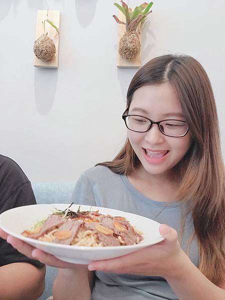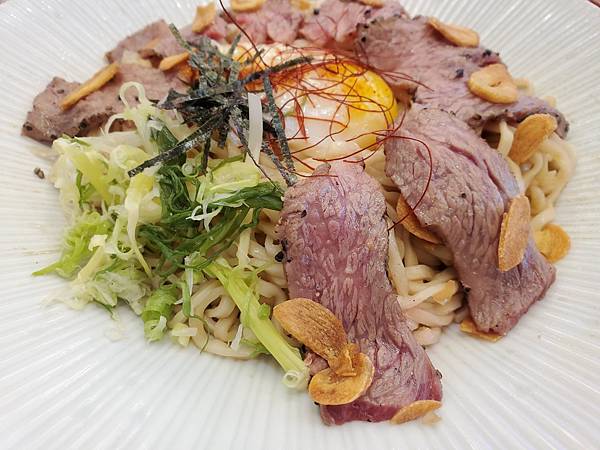 蒜香溫泉蛋製燒牛肉冷麵,這道料理也是老闆娘推薦,