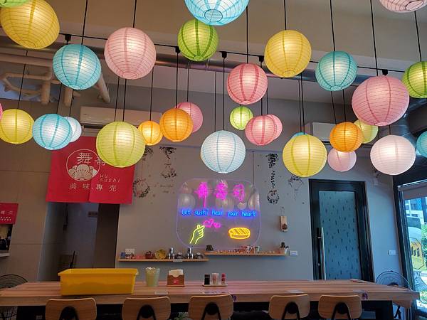 舞壽司店內的裝潢五彩繽紛~看著就覺得心情飛揚!是一間很有特色的壽司店~