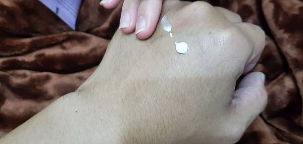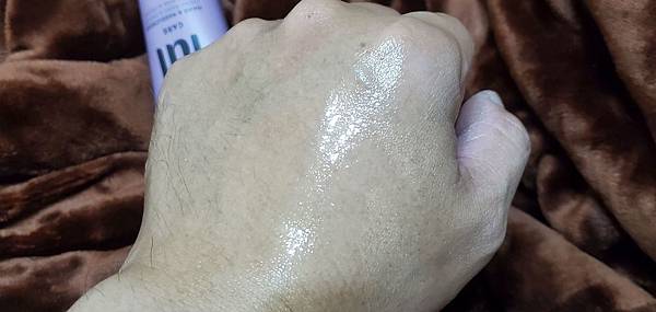 接下來做一下不油膩的噴水測試~拿我家老公的手來試XDD