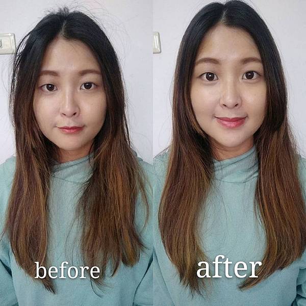 來對比一下使用日本潘婷髮型記憶雙鑽凍膜的前後差異性!髮尾的內彎變得超整齊的啦!!