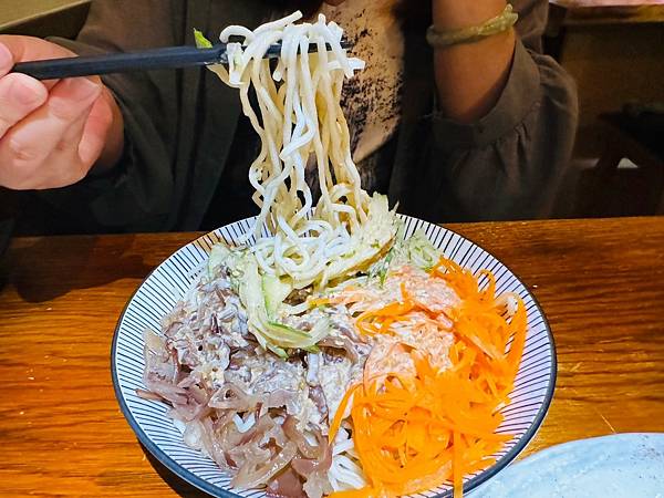 麵條份量不少,夾雜爽脆的胡蘿蔔絲 🥕 、黃瓜絲 🥒 、木耳~