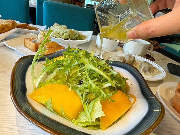 拉沙超大一盤~~鮮脆的生菜、橙醬 🍊 的酸甜打開了胃口,