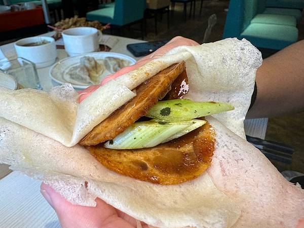 甜鹹的醬汁、爽脆的筍尖、餅皮的微微麵香,