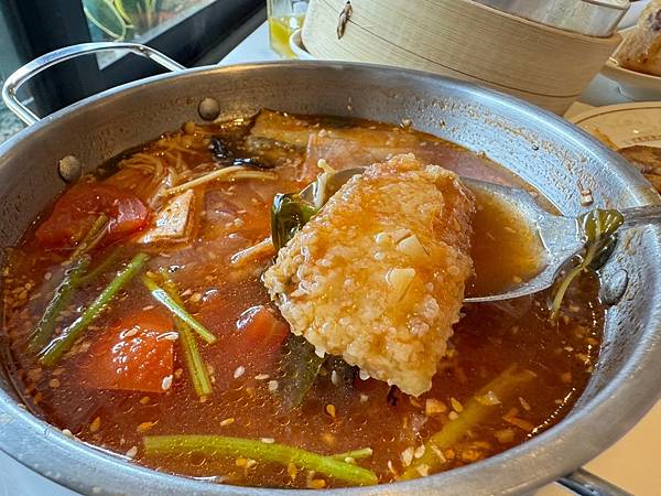 番茄餘鍋是天心岩的主廚特地去跟台中知名酸菜魚學的素食版