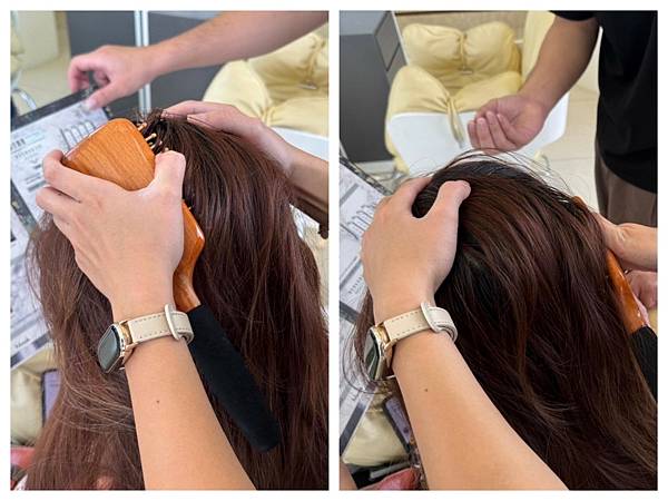 洗前按摩是用氣墊梳🪮+指壓👐~雙管齊下、翻倍的紓壓 💯