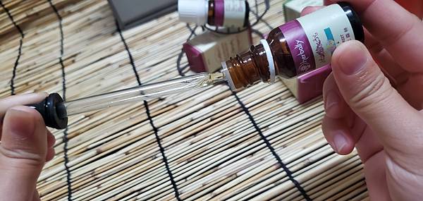 如果精油所剩不多,把蓋子打開直接用玻璃管吸取~
