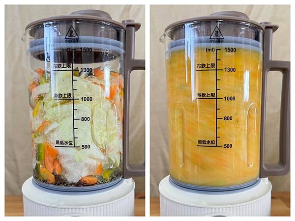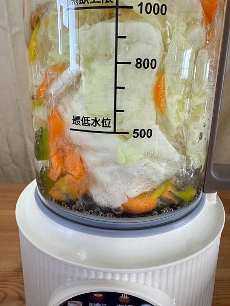 會先加熱煮沸,接著攪打,蔬菜肉眼可見逐漸細膩!!