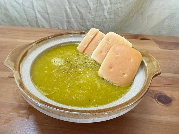 打碎後是清甜的蔬菜味,搭配幾塊麵包,