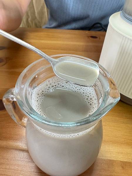 快速攪拌後可以得到一份濃稠、米香中有奶香的特殊甜點了