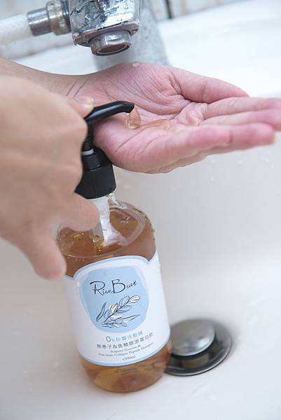 大概是因為添加了魚鱗膠原蛋白的關係,在搓洗頭髮的時候可以感覺到會有些微滑順的觸感~對我們染燙受損髮來說實在很友善!