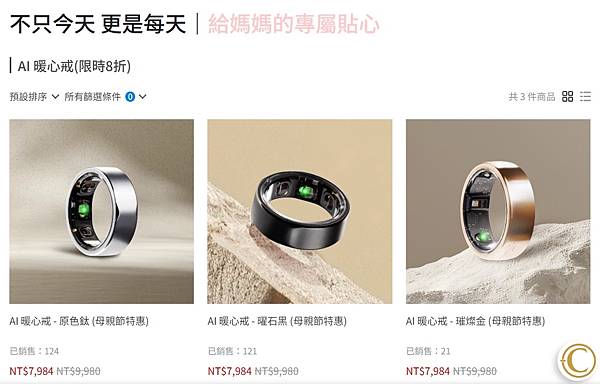 母親節享暖心戒8折優惠,4/11起使用折扣碼『hongting』下單,再折500元!